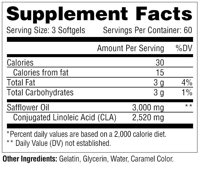 - 3,000 mg Ultra-Pure Safflower Oil: Provides a potent dose of high-quality, cold-pressed CLA Omega-6 fatty acids.