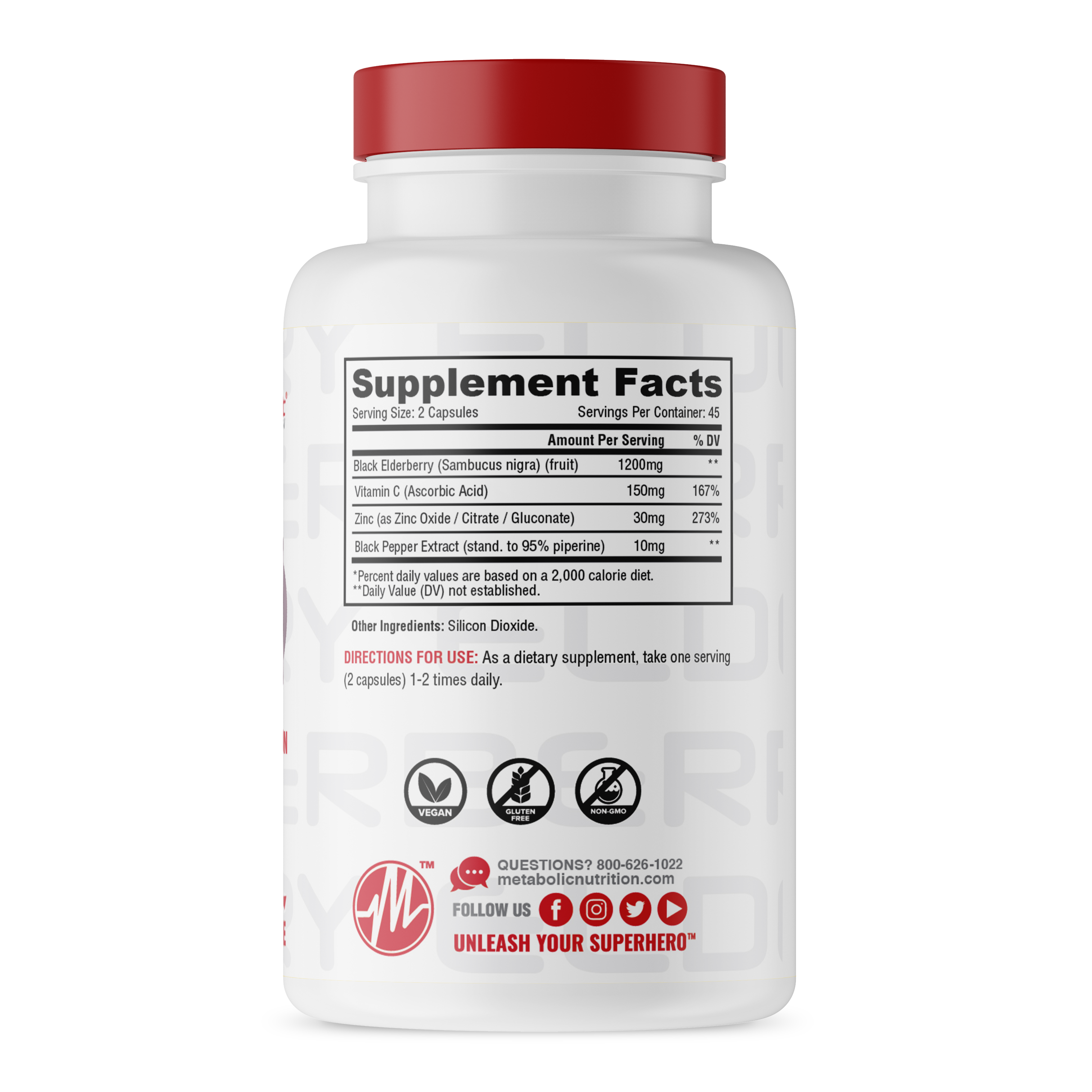 Elderberry is one of the most commonly used medicinal plants in the world. Its extract compounds help support a healthy immune system, are rich in anti-oxidants and help in fighting free radical damage in the body. Metabolic Nutrition provides a purified, all natural, highly concentrated, elderberry formula combined with Vitamin C, Zinc and Black Pepper Extract for maximum effectiveness & absorption...specifically developed for individuals who want to maximize their health and wellness.