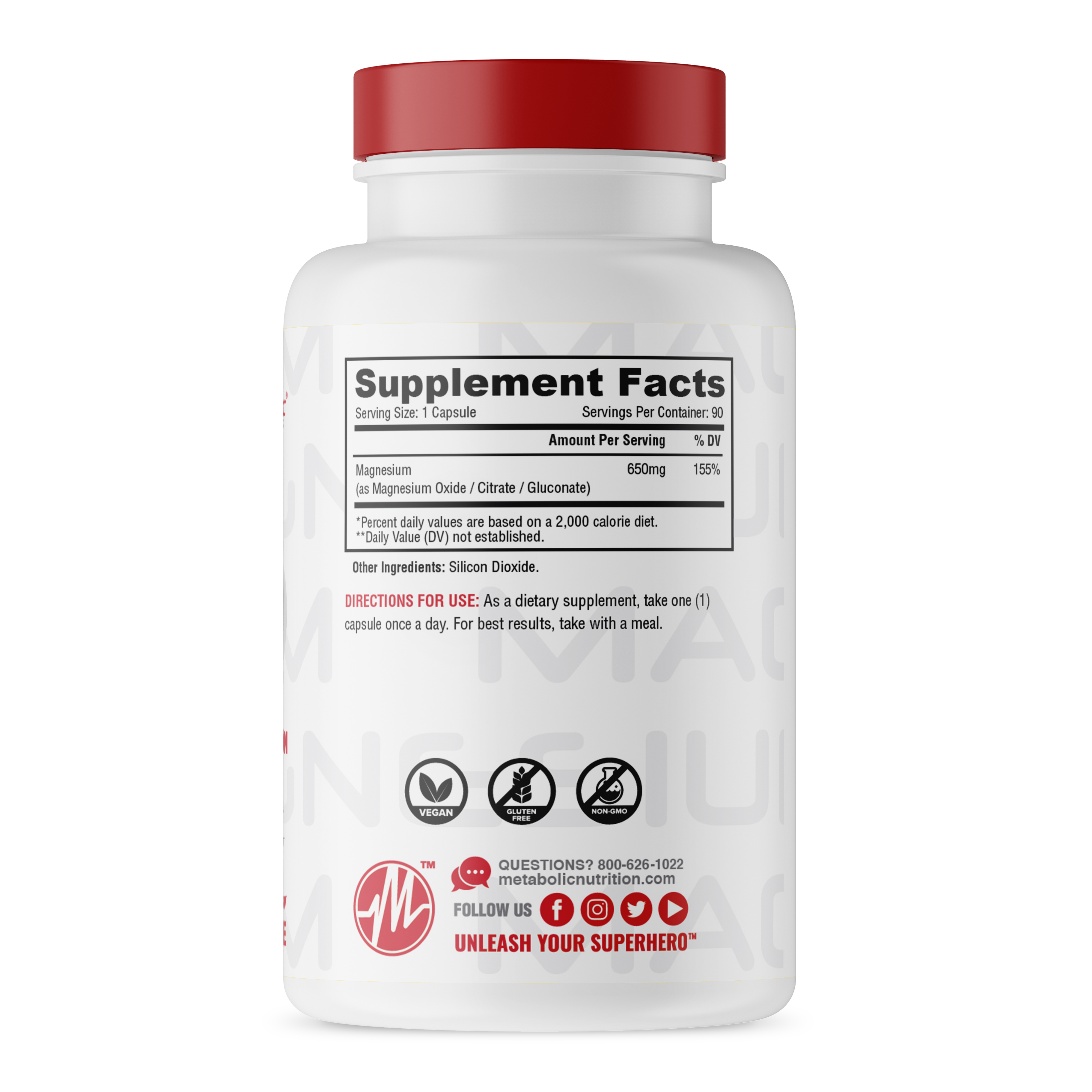 Magnesium is the 4th most abundant mineral in the human body and is involved in over 600 biochemical reactions, making it essential for good health. Magnesium is found throughout the body with 60% found in the bone, the other 40% can be found in the muscles, tissues, fluid and blood. Magnesium is critical to convert food to energy, creation of proteins, RNA & DNA repair, blood pressure regulation, improved muscle and bone strength & nervous system support. Metabolic Nutrition provides a purified, all natural, highly concentrated Magnesium for maximum effectiveness & absorption...specifically developed for individuals who want to maximize their health and wellness.