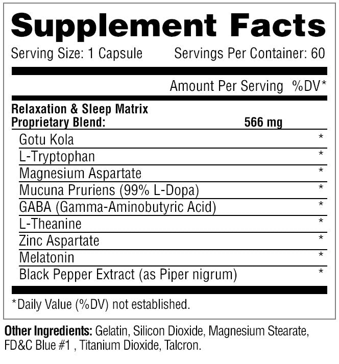 Do not exceed recommended dose. Consumer must be at least 18 years of age to purchase and/or use this product. Consult your physician prior to using this product or any supplement if you are pregnant, nursing, taking medication, have sleep apnea, narcolepsy or other related sleep disorders. Do not drive or operate heavy machinery after taking this product. Absolutely DO NOT consume with alcohol, prescription or over the counter medication including but not limited to sleep aids, opiates, or anti-depressants. Do not take this product if you are at risk or are being treated for any pre-existing medical condition including but not limited to: high or low blood pressure, cardiac arrhythmia, stroke, heart, liver, kidney or thyroid disease, seizure disorder, psychiatric disease or disorders, diabetes, difficulty urinating due to prostate enlargement or if you are taking an MAO inhibitors (MAO). Discontinue use and consult your health care professional if you experience any adverse reaction to this product. Discontinue use 2 weeks prior to surgery. KEEP OUT OF REACH OF CHILDREN.
